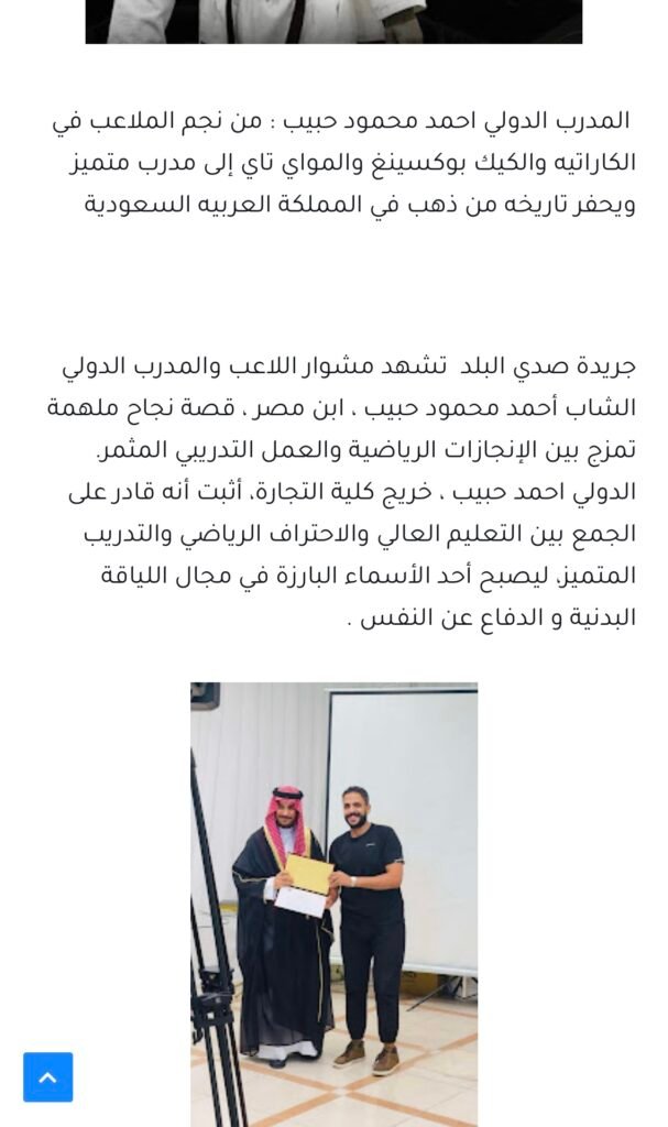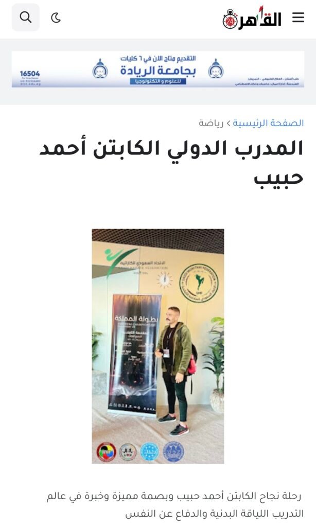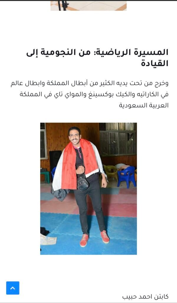 كابتن أحمد حبيب ما هو مجرد مدرب، ده اسم معروف في مجال اللياقة والدفاع عن النفس، في كل المحافل و الجرايد الرسمية درّب أكتر من 10,000 متدرب وحقق معاهم نتائج حقيقية.