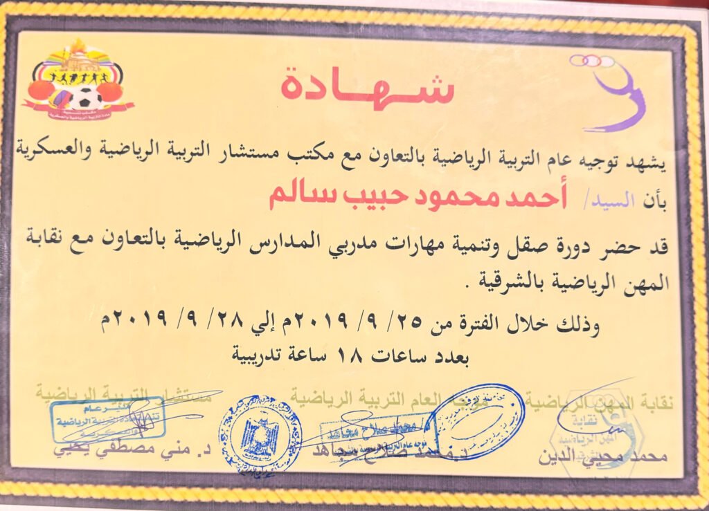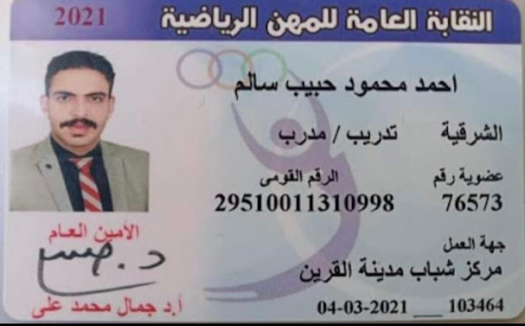 • عضو النقابة العامه للمهن الرياضية رقم عضوية 76573