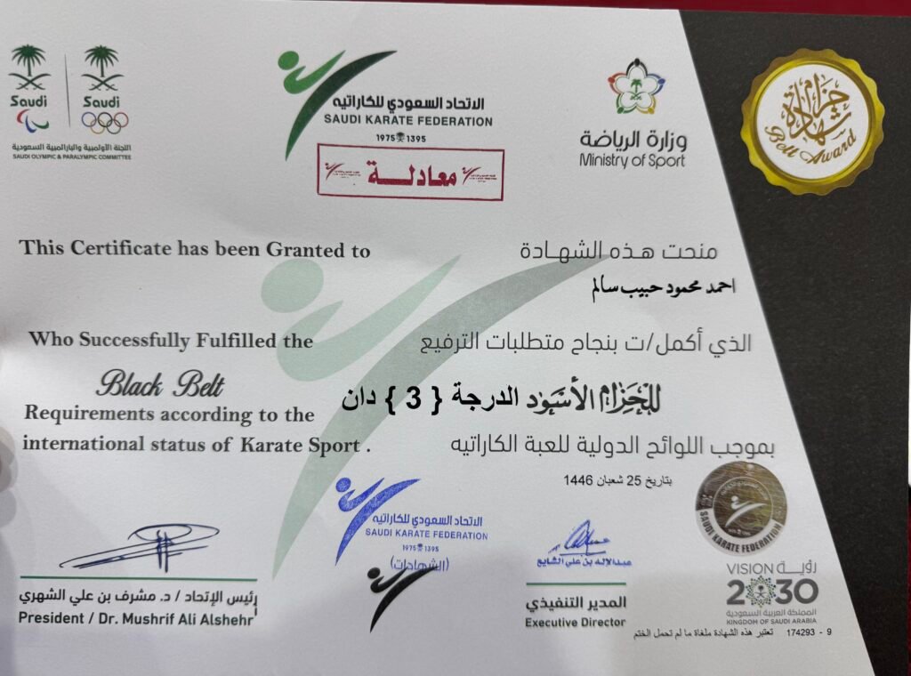 • عضو الاتحاد المصري والسعودي للكاراتية
