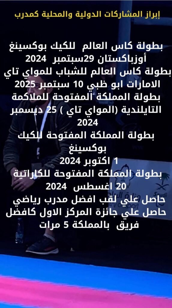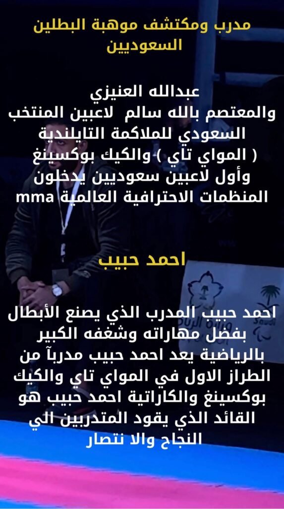 •مكتشف الموهبتين السعودين عبدالله العنزي والمعتصم بالله سالم أبطال العالم ولاعبين المنتخب السعودي للكيك بوكسينغ والمواي تاي